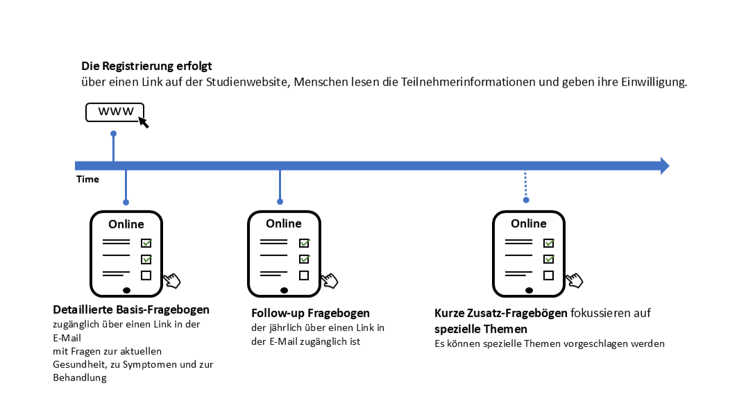 Die Studie zielt darauf ab, das Wissen über PCD zu erweitern, um die Gesundheit und Lebensqualität von Menschen mit PCD zu verbessern. Die Studie begann im Jahr 2020, als PCD-Selbsthilfegruppen um eine Studie baten, die herausfinden sollte, was mit Menschen mit PCD während der COVID-19-Pandemie geschieht. Nach der Pandemie möchten wir mit der kontinuierlichen Unterstützung von PCD-Patientengruppen weiterhin mehr über andere wichtige Themen für Menschen mit PCD erfahren, wie z. B. Lungengesundheit, psychische Gesundheit oder Behandlungsbelastung, indem wir regelmässig aktuelle Informationen über Online-Fragebögen einholen.