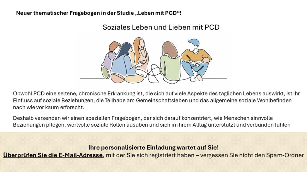 Wir haben einen neuen thematischen Fragebogen an zuvor registrierte Teilnehmer von „Leben mit PCD” verschickt, der sich auf das soziale Leben konzentriert!