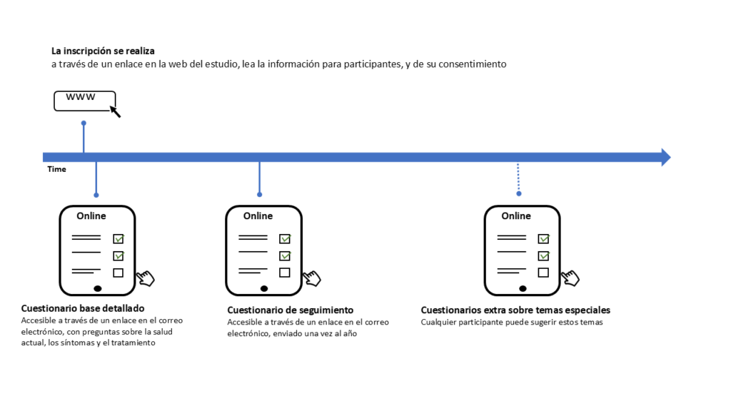 El estudio tiene como objetivo aumentar el conocimiento sobre la DCP con el fin de mejorar la salud y la calidad de vida de las personas con PCD. El estudio comenzó en 2020, cuando las asociaciones de pacientes con DCP solicitaron un estudio que averiguara qué les sucedía a las personas con DCP durante la pandemia de COVID-19. Tras la pandemia, con el continuo apoyo de las asociaciones de pacientes con DCP, queremos seguir aprendiendo sobre otros temas importantes para las personas que viven con DCP, como la salud pulmonar, la salud mental o la carga del tratamiento, a través de cuestionarios en línea recurrentes.